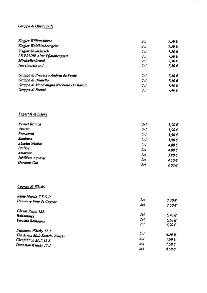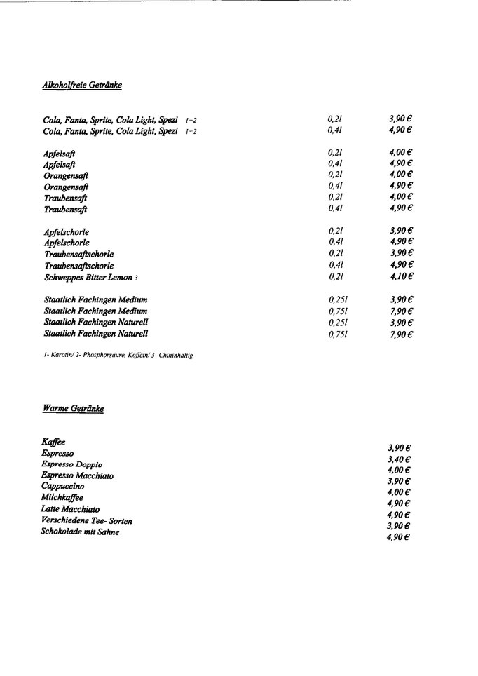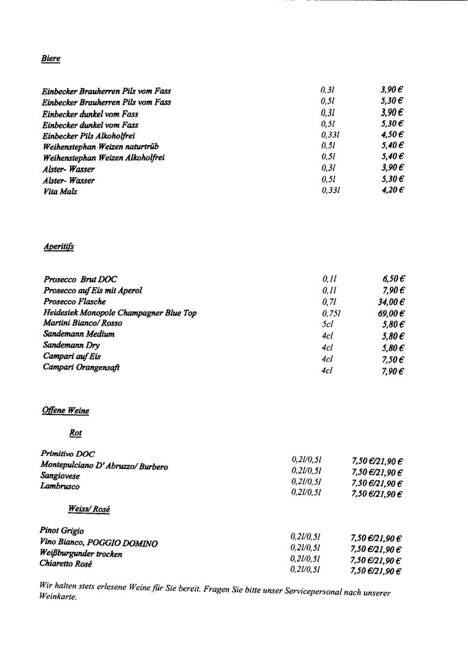 Unsere Getränkekarte