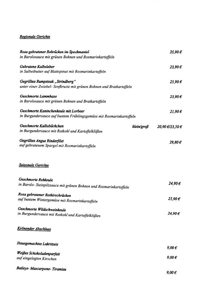 Unsere Speisekarte