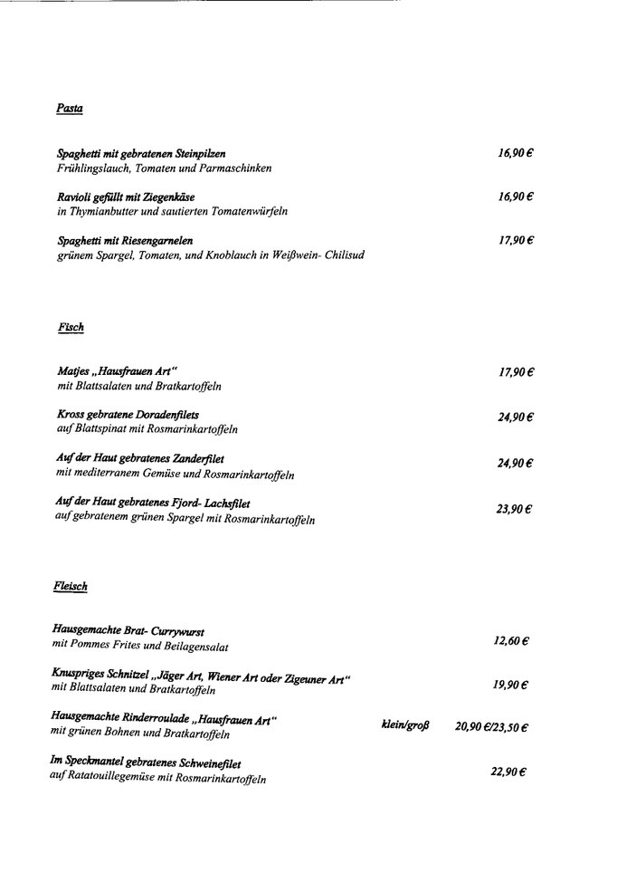 Mittagskarte/Tageskarte